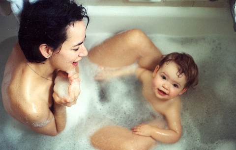 Bạn có thể giảm bớt thời gian trong ngày bằng việc kết hợp tắm với bé. Điều này còn làm cha mẹ và con cái thêm gắn kết.